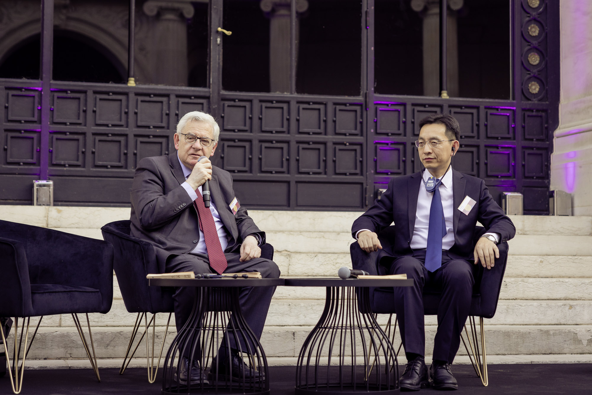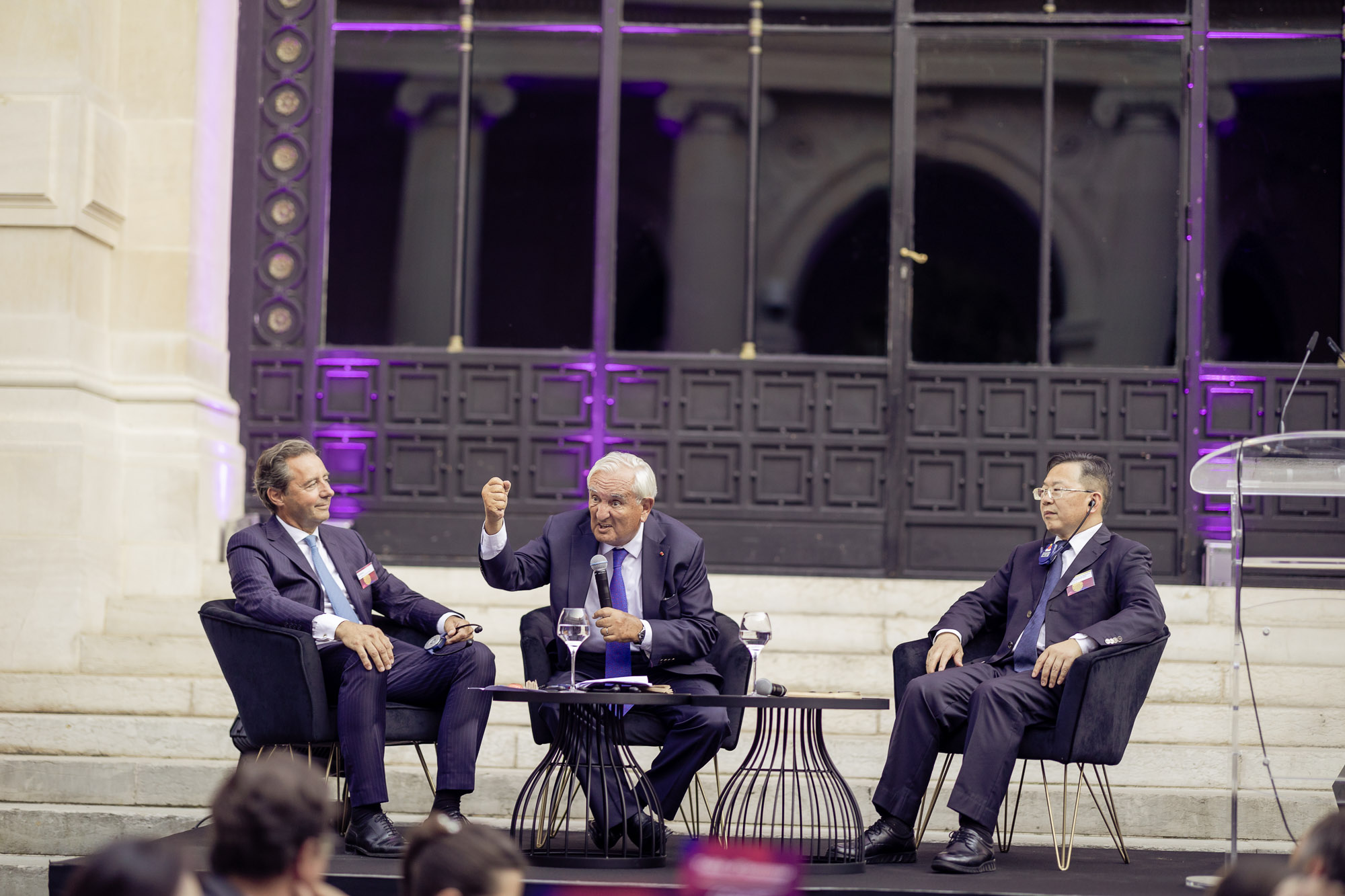 • Jean-Pierre RAFFARIN, ancien Premier ministre, Président de la Fondation prospective et innovation, conversant avec TANG Yonghong, (municipalité de Pékin) & Jean-Baptiste van Elslande (SAVENCIA).